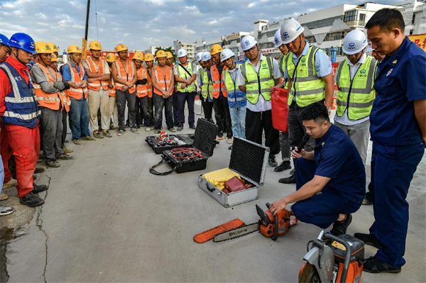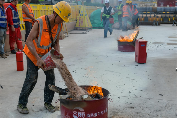 11月9日是第32個全國消防日。這次消防演練模擬火災(zāi)發(fā)生后如何使用干粉滅火器、干沙滅火,生活區(qū)宿舍起火員工俯身毛巾捂住口鼻逃生、昏迷受傷員工的轉(zhuǎn)移救治,以及消防救援機(jī)構(gòu)的介入救援等方面進(jìn)行演練。項目監(jiān)理單位點評時認(rèn)為,此次演練基本上是按照實景進(jìn)行的,進(jìn)一步增強(qiáng)了項目的應(yīng)急應(yīng)變、團(tuán)隊協(xié)調(diào)和處置保障能力,為應(yīng)對突發(fā)事件積累寶貴經(jīng)驗,保證安全生產(chǎn)工作全面落實。