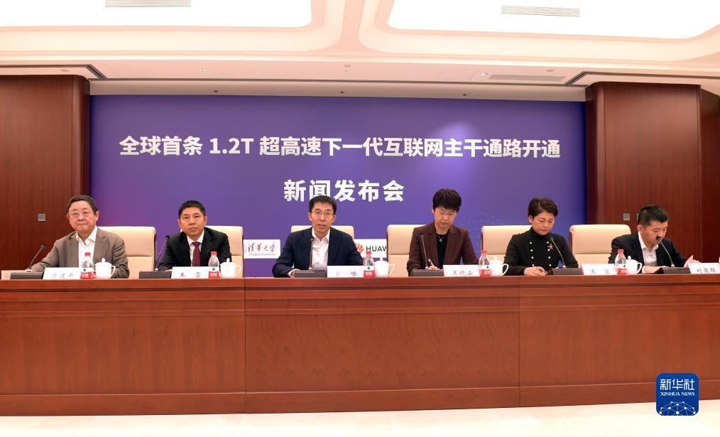 11月13日,全球首條1.2T超高速下一代互聯(lián)網(wǎng)主干通路開(kāi)通新聞發(fā)布會(huì)在清華大學(xué)舉行。新華社發(fā)(清華大學(xué)供圖)