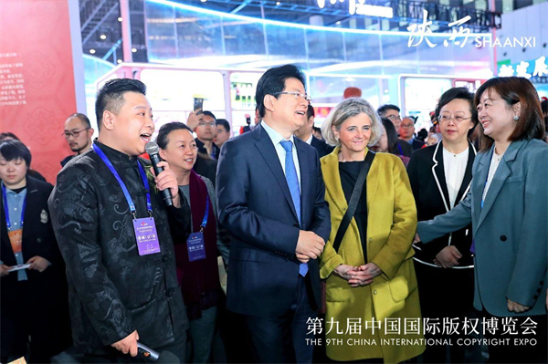 11月23日上午,中宣部副部長張建春、世界知識(shí)產(chǎn)權(quán)組織副總干事希爾維·福爾班等一行來到陜西館,聽取了陜西館的情況介紹并予以高度評(píng)價(jià)。