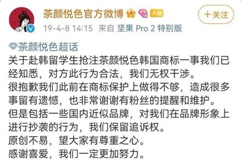 對(duì)此,茶顏悅色也十分無(wú)奈,表示:已經(jīng)悉知,對(duì)方此行為合法,我們無(wú)權(quán)干涉。