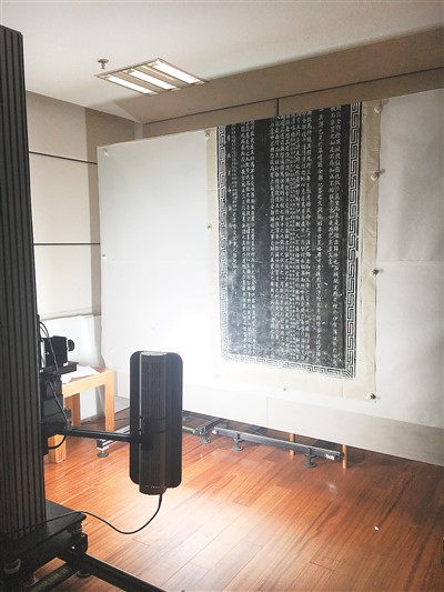 對(duì)石刻拓片進(jìn)行古籍?dāng)?shù)字化拍攝。中國(guó)國(guó)家圖書(shū)館供圖