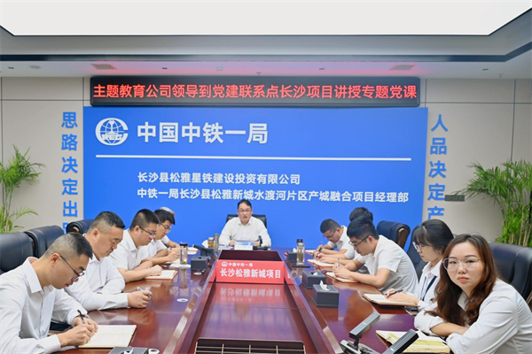 近日,中鐵一局一公司副總經(jīng)理裴賀元到長沙縣產(chǎn)城融合項目部調(diào)研,并為全體黨員干部講授主題教育專題黨課。