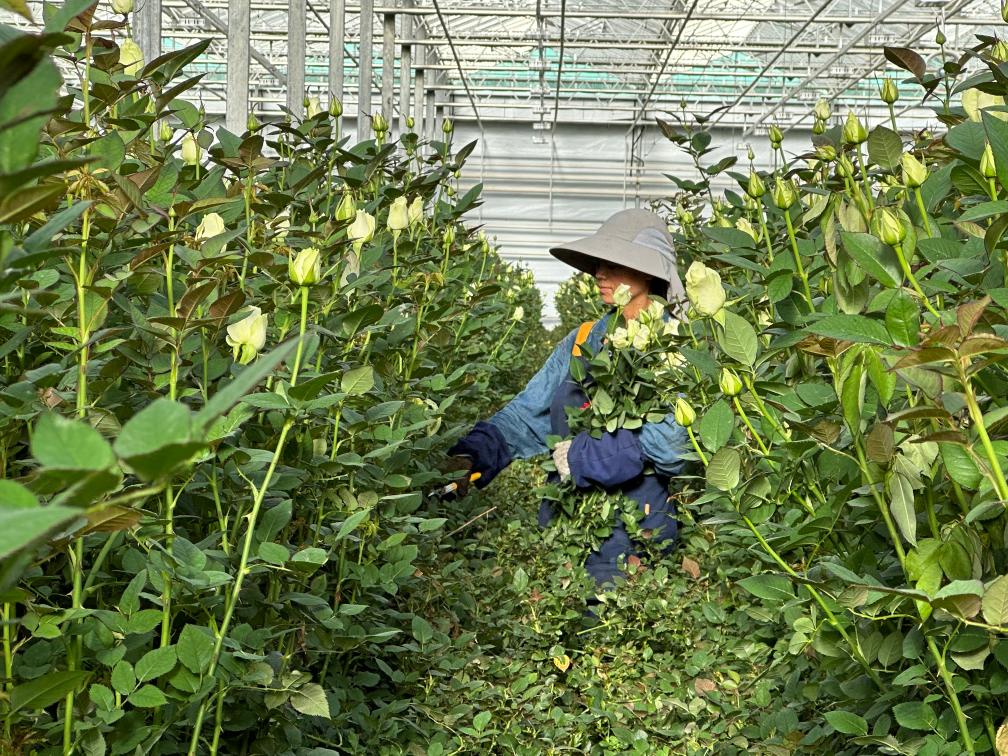 脫去厚重的外套,張小紅換上輕便的工作服,戴好手套和帽子,拿起大剪刀,開(kāi)始了一天的剪花工作。只見(jiàn)她走進(jìn)幽深窄密的綠色長(zhǎng)廊,直到看不見(jiàn)人影。少許時(shí)刻,她便抱著一大捧玫瑰走了出來(lái),新鮮的露水從嬌嫩的花瓣上滴落。平板車(chē)?yán)锸M(mǎn)清水,她和其他工人們一起,將新鮮采摘的玫瑰用網(wǎng)紗細(xì)心地裹好,然后放置水中。再過(guò)不久,這些玫瑰將被運(yùn)往全國(guó)各地甚至海外,為人們帶來(lái)愉悅和享受。