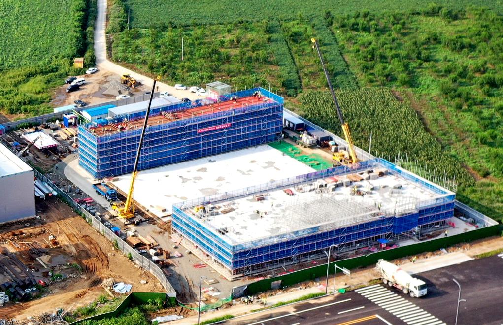 在沈陽市鐵西區(qū)拍攝的德國賀利氏特種光源項目建設(shè)現(xiàn)場(2023年8月28日攝,無人機照片)。新華社記者楊青 攝