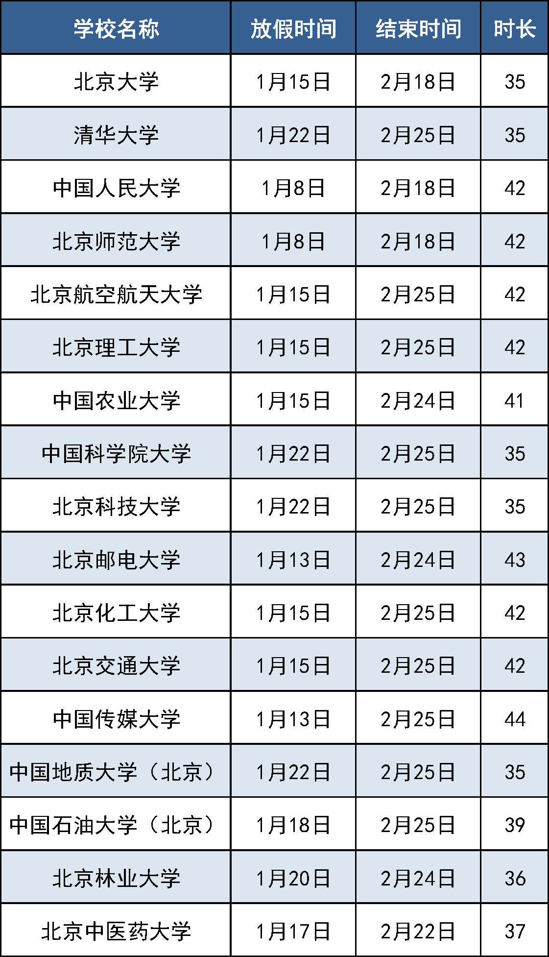 寒假在即,北京各大高校紛紛公布2024年寒假放假安排。北京大學(xué)、清華大學(xué)、中國人民大學(xué)等近40所高校公布的放假安排中,最長的假期達(dá)48天。
