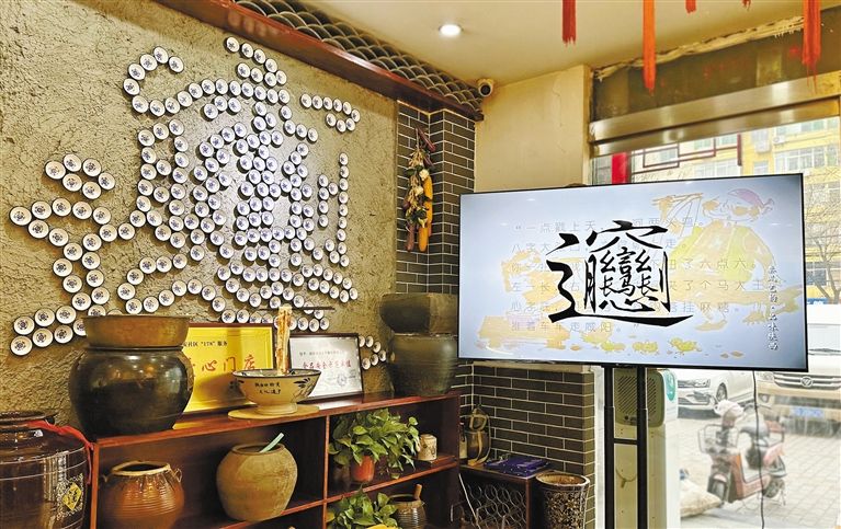 咸陽市鴻漸biangbiang面館展示的“biang”字裝飾。 記者 琚鵬飛攝