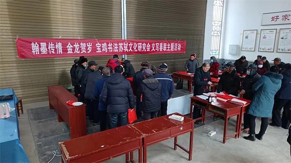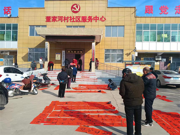 迎春飛雪天地寒,瑞氣瓊花兆豐年。新春佳節(jié)即將來臨,為豐富鄉(xiāng)村群眾的精神文化生活,營造喜慶祥和的節(jié)日氛圍,1月24日上午,范家寨鎮(zhèn)董家河村駐村工作隊(duì)和村委會(huì)邀請寶雞市蘇軾文化研究會(huì)在董家河村開展“翰墨傳情 金龍賀歲”春聯(lián)義寫活動(dòng),9名書法名家現(xiàn)場揮毫潑墨,為脫貧戶送上了一份精心烹制的“文化大餐”。