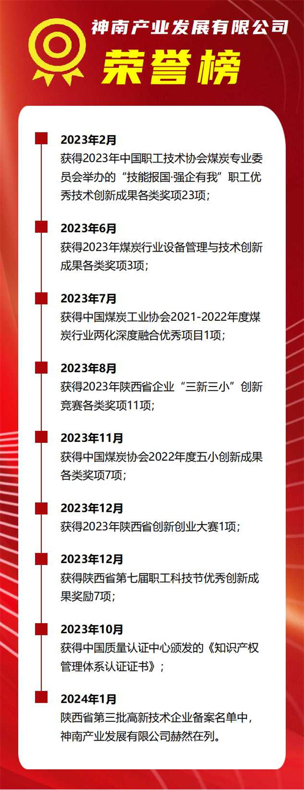 全年362項(xiàng)創(chuàng)新產(chǎn)生于生產(chǎn)一線,53項(xiàng)創(chuàng)新在各平臺(tái)獲獎(jiǎng)。榮譽(yù)背后,是強(qiáng)勁的品牌影響力,是澎湃的發(fā)展動(dòng)能,是許多人的努力與堅(jiān)守。2023年,神南產(chǎn)業(yè)發(fā)展公司以科技成果惠及企業(yè)發(fā)展為突破點(diǎn),搭平臺(tái)、建團(tuán)隊(duì)、立項(xiàng)目、優(yōu)管理,實(shí)施了一批重大科研項(xiàng)目,形成了一批具有自主知識(shí)產(chǎn)權(quán)的科技創(chuàng)新成果,培育了一批技術(shù)創(chuàng)新能手,科技創(chuàng)新工作亮點(diǎn)紛呈。