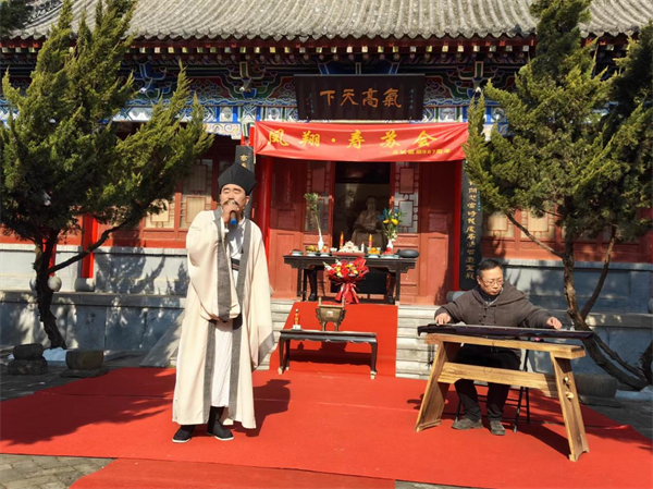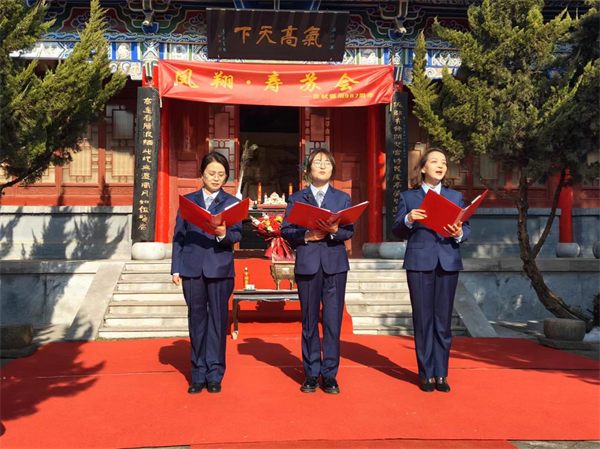 寶雞市蘇軾研究會常務(wù)副會長、鳳翔東湖管理處主任齊會斌致辭,寶雞市蘇軾文化研究會顧問、鳳翔區(qū)作家協(xié)會主席魯旭宣讀壽辭。