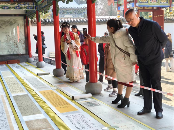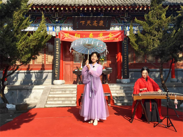 活動現(xiàn)場,參與者眾多,活動形式多樣,除了隆重的祭拜儀式,穿插了《喜雨亭記》誦讀,古箏、吟誦、唱讀、茶藝、舞蹈表演、書法長卷展示、東湖園林游覽,歌曲《明月幾時有》,把觀眾帶入古樸雅致的氛圍,幽遠(yuǎn)的天籟之音中;詩朗誦《仰望蘇東坡》把整個活動掀向了高潮,大家仿佛穿越到古代,接受了一次“沉浸式”傳統(tǒng)文化的熏陶。