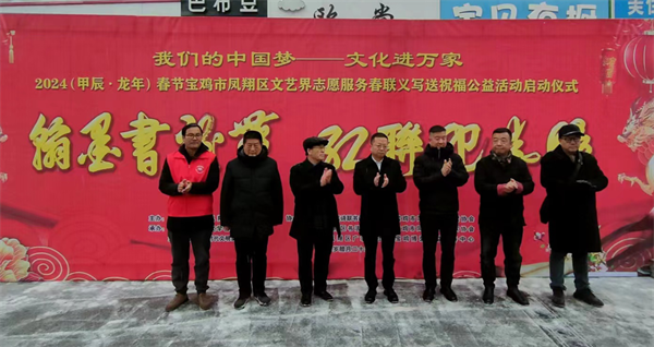 西部決策網(wǎng)訊(記者劉玉 韓宗憲 通訊員 閆芝羽)2月2日,“我們的中國夢·文化進(jìn)萬家”——2024春節(jié)寶雞市鳳翔區(qū)文藝界志愿服務(wù)春聯(lián)義寫送祝福公益活動啟動儀式在區(qū)政府大門西側(cè)廣場舉行,區(qū)委常委、宣傳部部長賈亞斌出席活動啟動儀式。