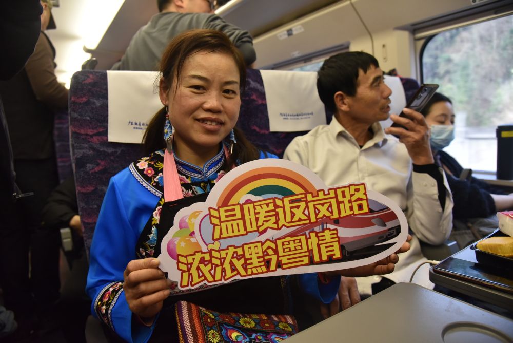 2月18日下午,隨著D1859次列車緩緩駛?cè)霃V州南站,包括石品芳在內(nèi)的640名貴州黔南州務(wù)工人員,開啟了新一年的奮斗歷程。