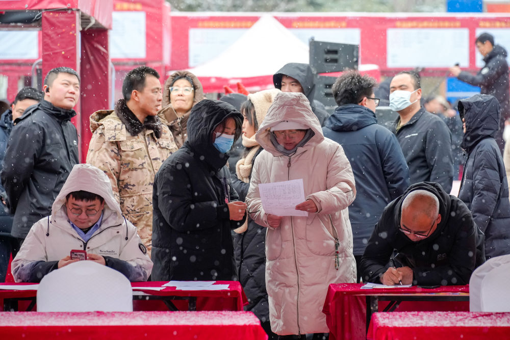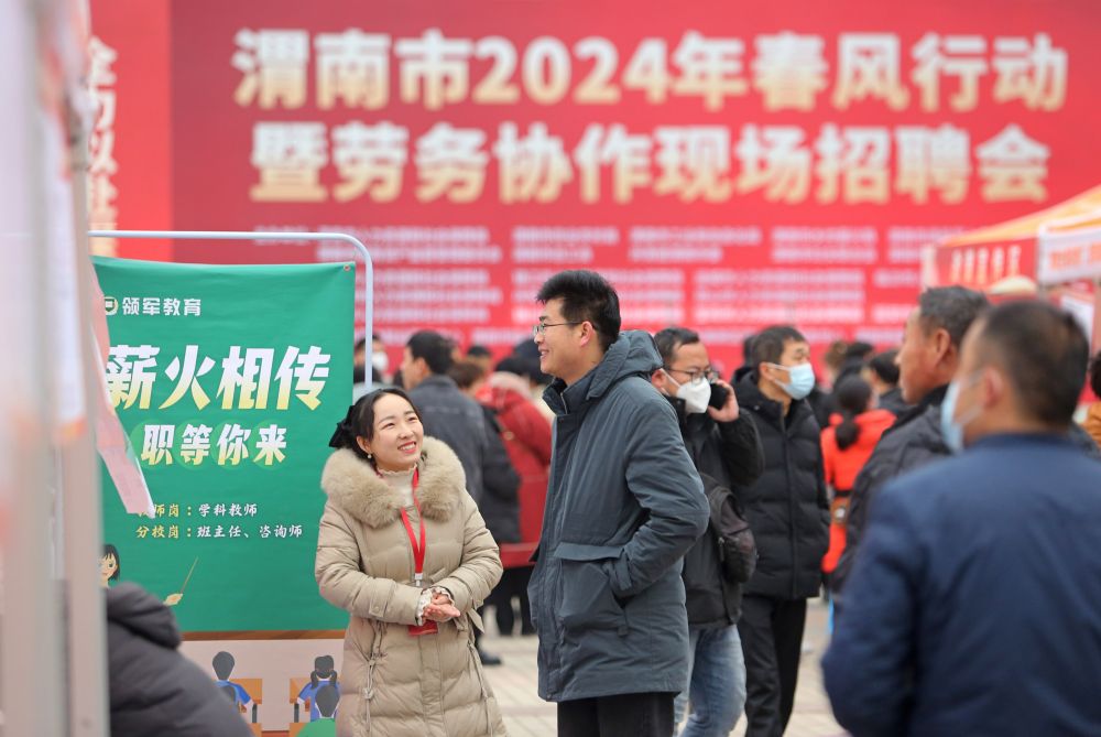2月19日,求職者在陜西省渭南市2024年“春風行動”暨勞務(wù)協(xié)作現(xiàn)場招聘會了解企業(yè)招聘情況。新華社發(fā)(崔正博攝)