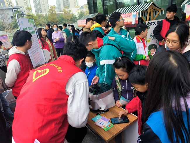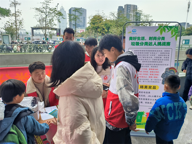 此次志愿服務活動采用現(xiàn)場教學和有趣的垃圾分類挑戰(zhàn)賽等方式,向市民傳播垃圾分類的科學知識和綠色環(huán)保的生活理念。垃圾分類達人挑戰(zhàn)賽現(xiàn)場氣氛熱烈,答題挑戰(zhàn)隊伍排成了長龍,每位參與者都躍躍欲試、反復操練,期望在分類游戲挑戰(zhàn)賽中取得高分和心儀的獎品。