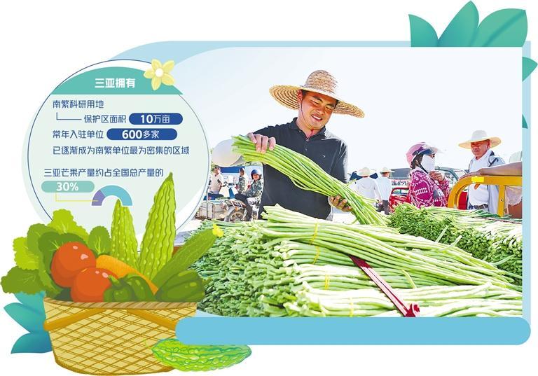 三亞蔬果業(yè)繁榮有賴于南繁種業(yè)基地的賦能。三亞擁有南繁科研用地保護(hù)區(qū)面積10萬畝,常年入駐單位達(dá)600多家,已逐漸成為南繁單位最為密集的區(qū)域。每年冬春,來自全國(guó)各大農(nóng)業(yè)科研機(jī)構(gòu)的6000名專家人才匯聚于此,田地間、實(shí)驗(yàn)室、人才小院處處可見他們的身影,培育出最適合生長(zhǎng)在三亞市崖州區(qū)這片土地上的“致富苗”。