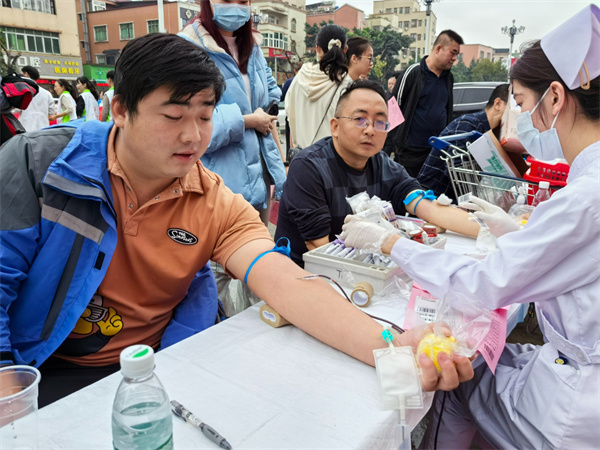 在廣州市白云區(qū)第二人民醫(yī)院無償獻血活動現(xiàn)場,志愿者們在醫(yī)務(wù)人員的指引下有序排隊,填寫登記表、測量血壓、抽血化驗、完成采血等一系列程序,隨著一股股鮮血緩緩流入血袋,志愿者們濃濃的愛心也傳遞了出去。