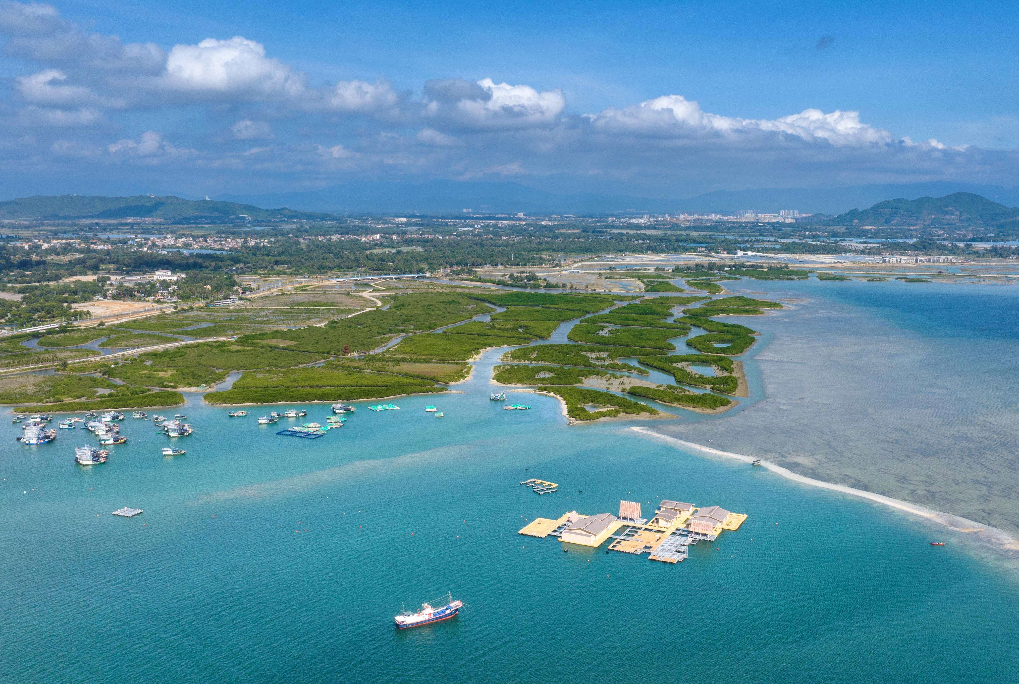 △海南陵水紅樹林國家濕地公園。紅樹林素有“海岸衛(wèi)士、鳥類天堂、魚蝦糧倉”的美譽,在凈化海水、防風消浪、維持生物多樣性、固碳儲碳等方面發(fā)揮著極為重要的作用。