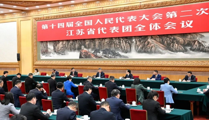 2024年3月5日,習(xí)近平參加他所在的十四屆全國人大二次會議江蘇代表團審議。新華社記者 謝環(huán)馳 攝
