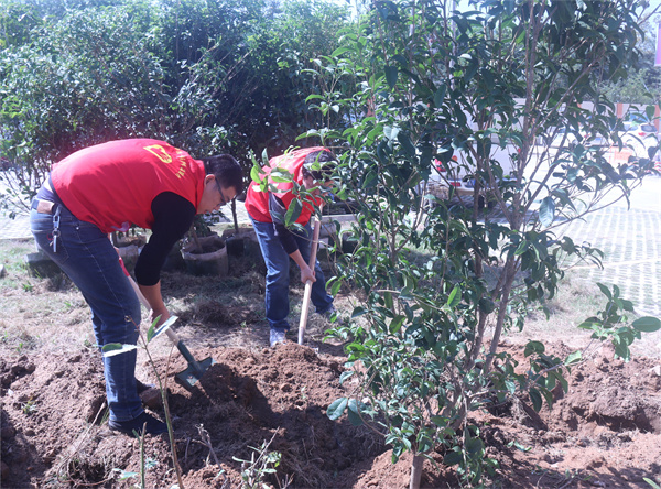 活動(dòng)中,大家分工明確,互幫互助,用自己的勞動(dòng)詮釋著對(duì)大自然生命的關(guān)愛(ài),并在相互配合中享受著一片綠色的春意。